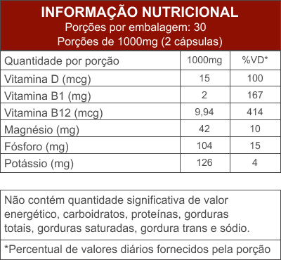 Este produto não é um medicamento. Não exceder a recomendação diária de consumo indicada na embalagem. Mantenha fora do alcance de crianças. Este produto não deve ser consumido por gestantes, lactantes e crianças. Após aberto consumir em até 60 dias.